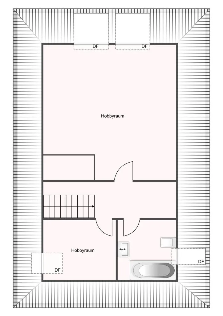 Der Spitzboden wurde ausgebaut und kann z.B. als Hobbyraum genutzt werden.