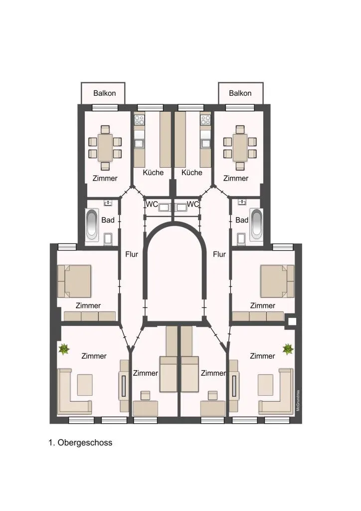 Die Wohnungen sind gut geschnitten und werden hauptsächlich von Paaren genutzt. Zu jeder Wohnung gehört ein Abstellraum im Keller des Hauses. Die Wohnungen sind vermietet, lediglich die Wohnung im Erdgeschoss rechts wurde im Hinblick auf den anstehenden Verkauf nicht vermietet.
