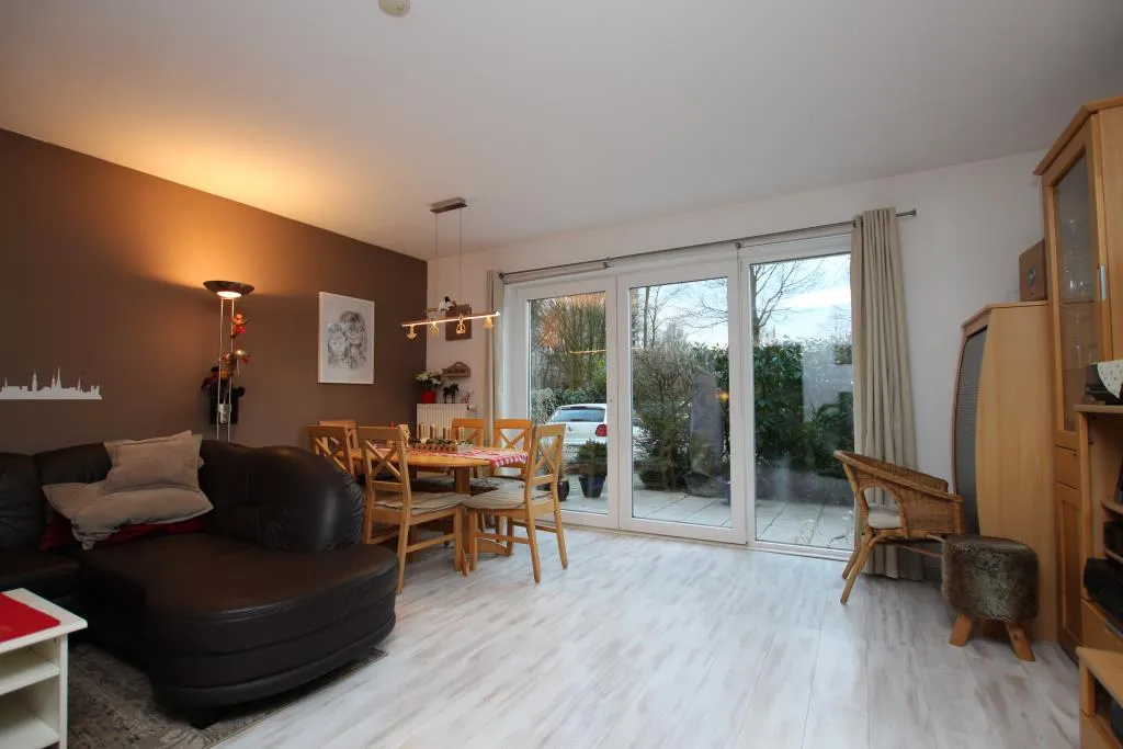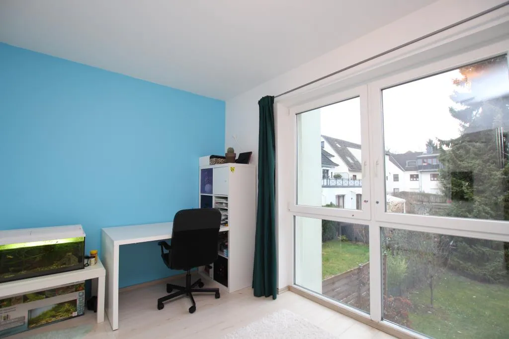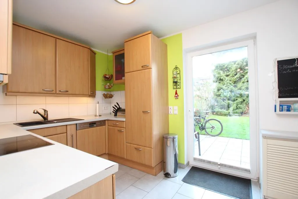 Im Erdgeschoss befindet sich die geräumige Küche, ein helles Wohnzimmer mit Zugang zur