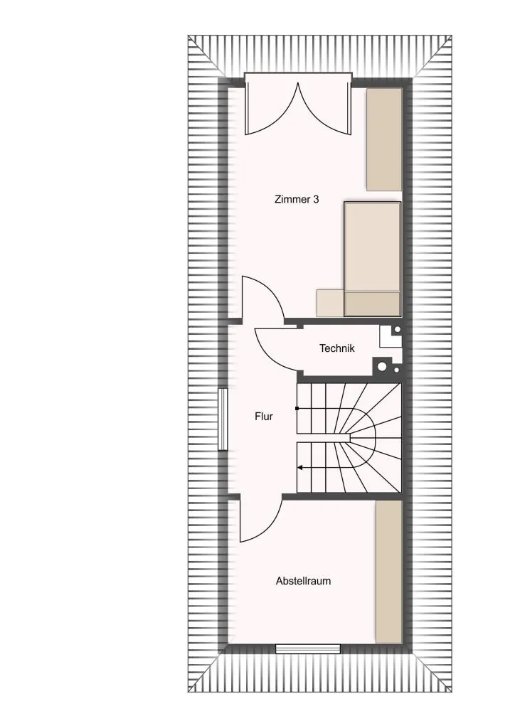 Im Staffelgeschoss befinden sich ein weiteres Kinderzimmer sowie ein halbes Zimmer, welches momentan als Ankleide-/Abstellzimmer genutzt wird und der Heizungsraum.