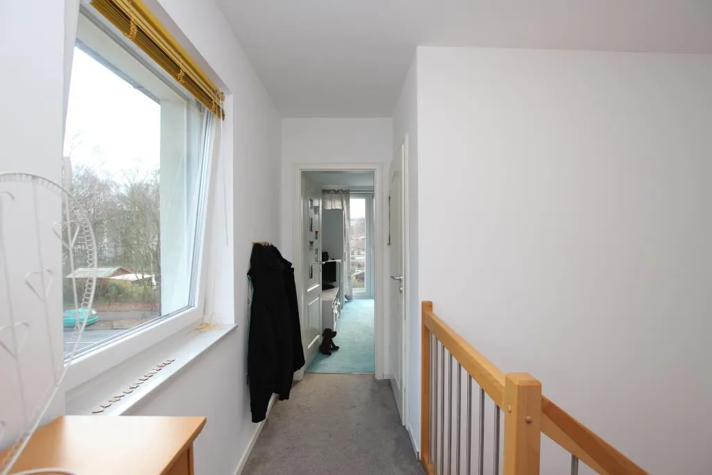 Im Obergeschoss befinden sich das Schlafzimmer, ein Kinderzimmer, ein Vollbad mit Fenster, separater Duschkabine und Fußbodenheizung sowie eine Abstellkammer.