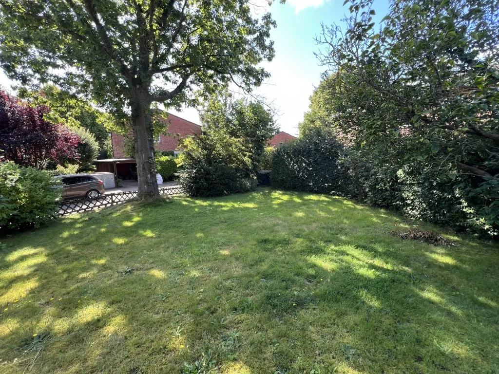 Das Grundstück umfasst zwei Flurstücke und verfügt aufgrund der Ecklage über eine große Gartenfläche.