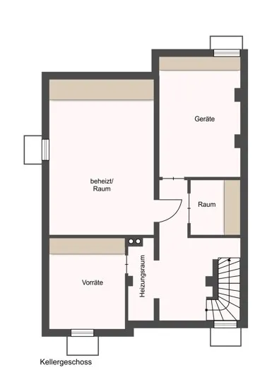 Im Keller des Hauses befindet sich ein beheizter Keller-/Hobbyraum und zwei Abstellräume. Der Keller verfügt über eine Außentreppe zum Garten und ist somit direkt begehbar.